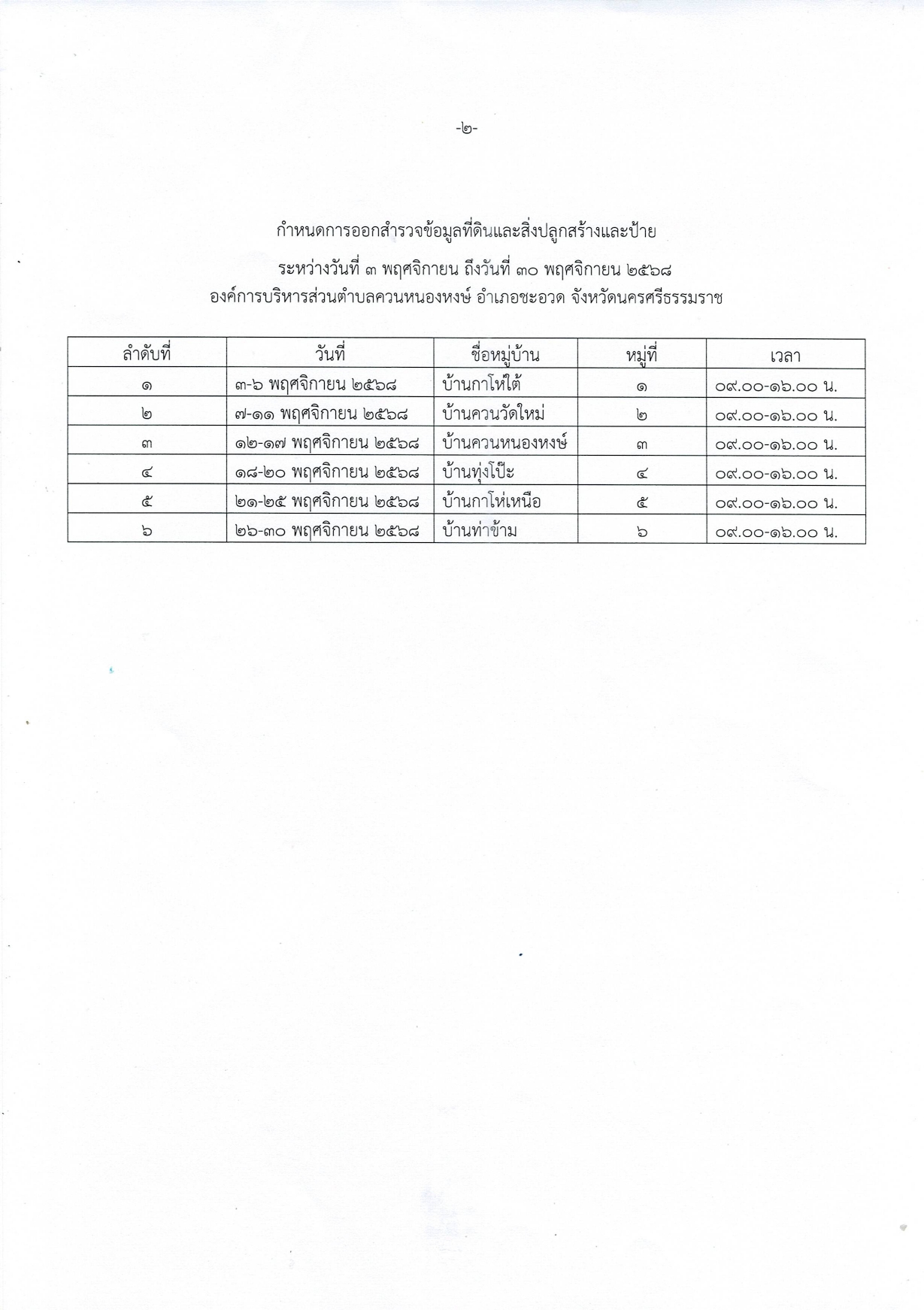 ประกาศองค์การบริหารส่วนตำบลควนหนองหงษ์ เรื่องประชาสัมพันธ์การสำรวจข้อมูลที่ดินและสิ่งปลูกสร้างและป้ายประจำปีงบประมาณ พ.ศ. 2569